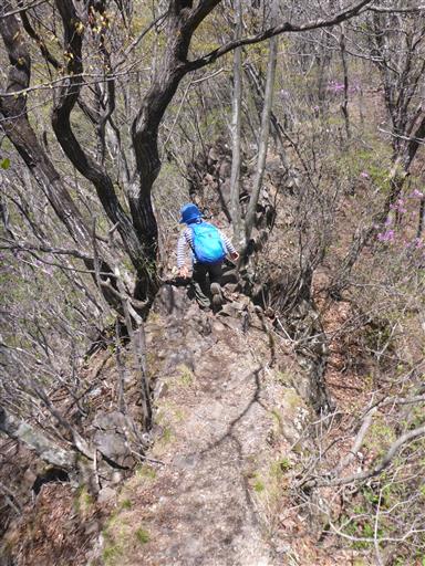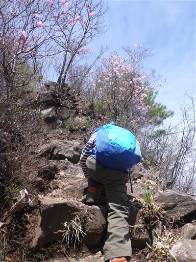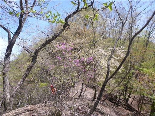 二ノ岳にもチラホラとアカヤシオの花が咲いている。