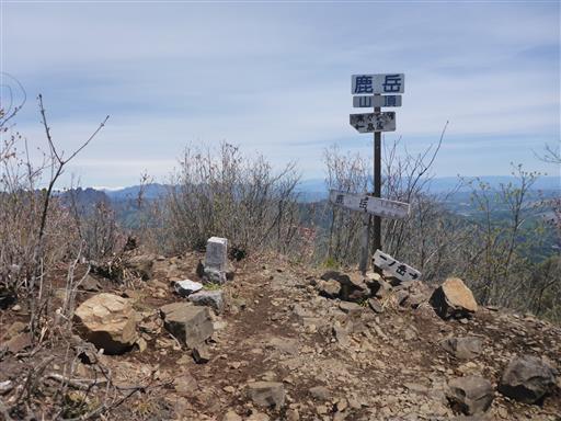 | ルート (Map) | 鹿岳駐車場 (8:55) - (10:15) 一ノ岳二ノ岳分岐点 - (10:26) 一ノ岳 - (11:01) 二ノ岳 (11:49) - (12:07) 一ノ岳二ノ岳分岐点 - (12:43) マメガタ峠 - (13:00) 畑 (13:23) - (13:37) 車道 - (13:57) 鹿岳駐車場 |
