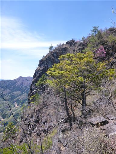 背景の新緑が美しい。その中に見える岩壁は正に西上州の景観だ。