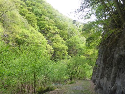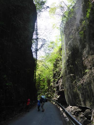 最後は絶壁に挟まれた車道を歩いて駐車場に戻る。