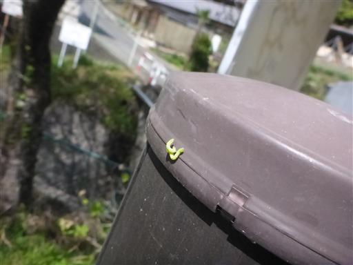シャクトリムシ。二匹がもつれ合っているが、喧嘩しているのだろうか?