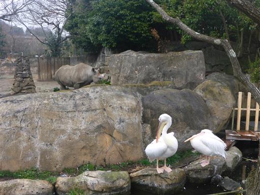 トンネルを抜けると、まずはペリカンとサイがお出迎え。