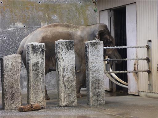 ここのゾウは牙が非常に大きい。