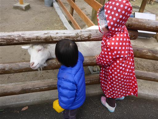 動物と触れ合えるコーナー。ヤギやヒツジ、ブタがいる。