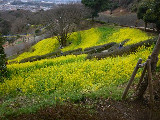 動物園を出た場所に、菜の花畑が広がっている。