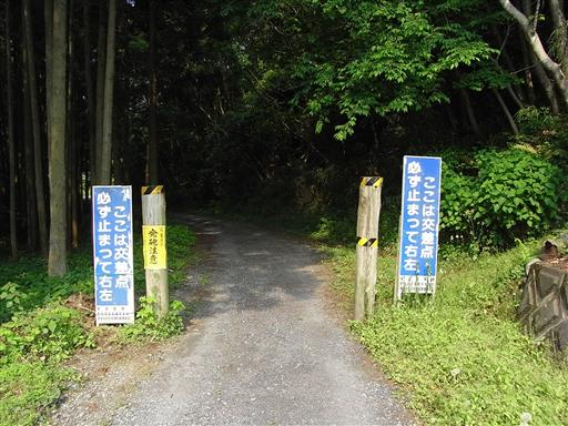 登山道入口に到着。「ここは交差点」という謎の標識が立つ。