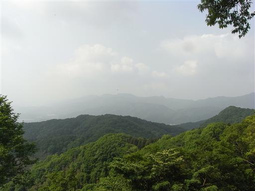展望台からの眺め。隣の山も良く見えないほど霞んでいる。