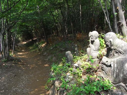 下山道は五百羅漢道という、石仏がたくさん並んでいる道を歩く。
