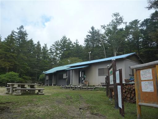 笠取小屋に到着。小屋前にはベンチとテーブルがあるためここで小休止。