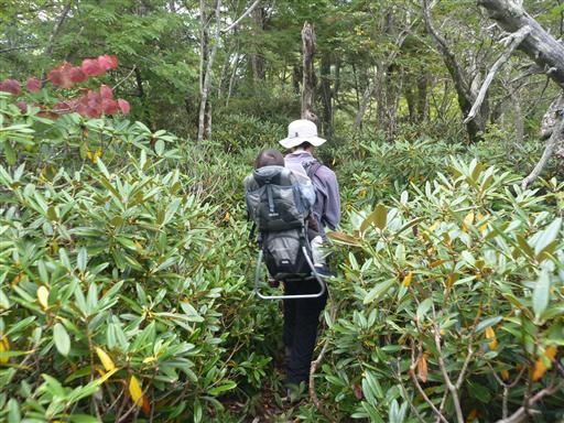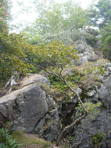 シャクナゲに覆われた稜線を歩いていく。