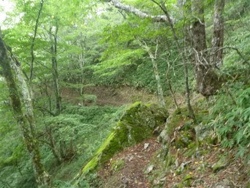 稜線下についている巻道に合流。ここからは平らな道を歩いていく。