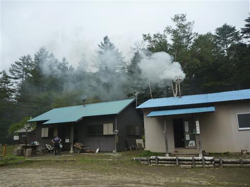 煙がもうもうと出ているので小屋の主人が来ているようだ。