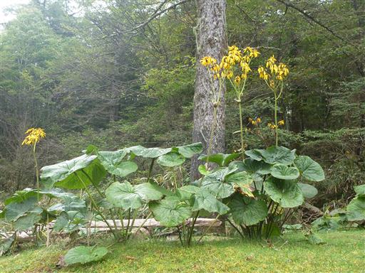小屋の付近には大きなマルバダケブキが咲いている。