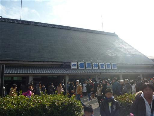 橿原神宮前駅到着。すでに駅前には大勢の人がいる。