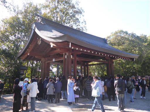 手水舎。ここで身を清めるべきなのだが、混雑しているのでスキップ。