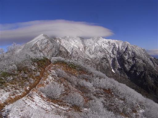 目の前に爺ヶ岳が望める。左から北峰、中峰、南峰だ。