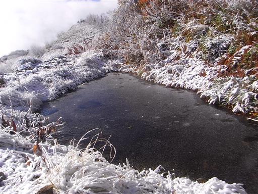 この景色にはびっくり。完全な冬山の景色だ。