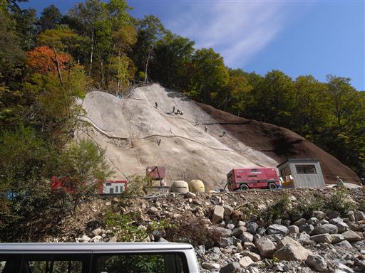 このような場面を始めてみたが、コンクリートで完全に固定されるまでは崩落してきそうだ。