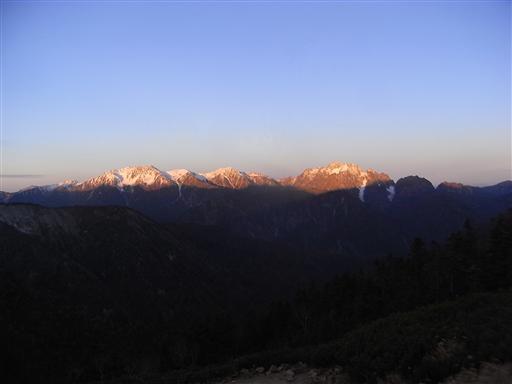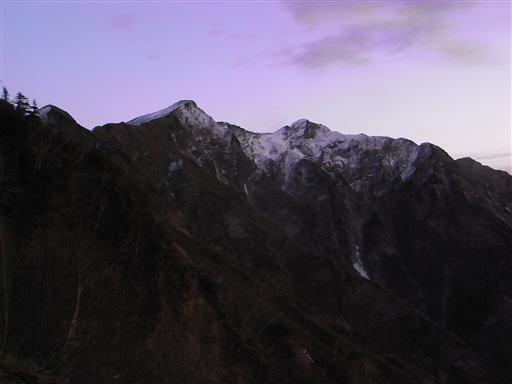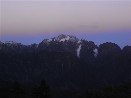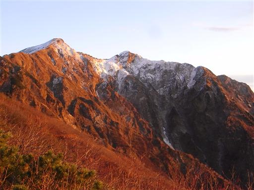 朝陽を浴びて鹿島槍ヶ岳が輝きだす。