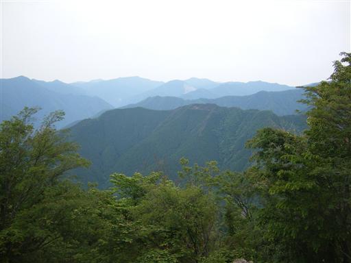 奥多摩の山々がぼんやりと見える。