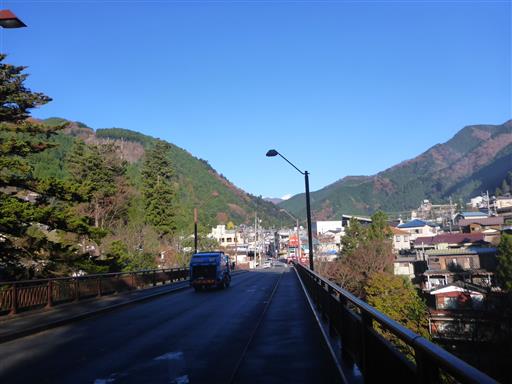 橋を渡って奥多摩駅を目指す。本日は快晴だ。