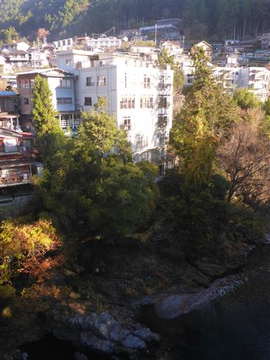 河の縁に立つ旅館。増水したらちょっと怖い。