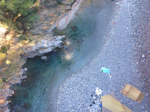 橋の下を覗き込む。寒い中キャンプをしている人がいる。