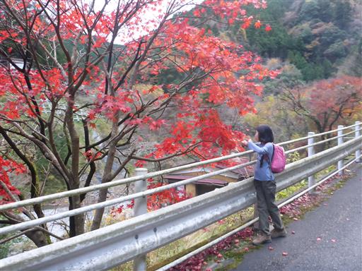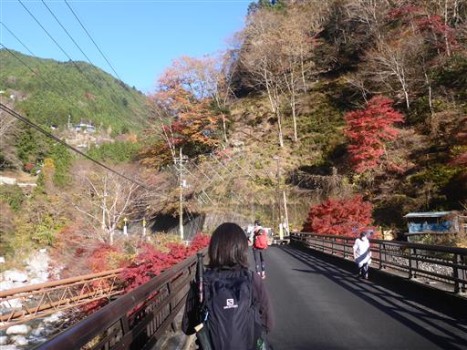 川乗橋まで歩いて移動。周囲の紅葉が美しい。
