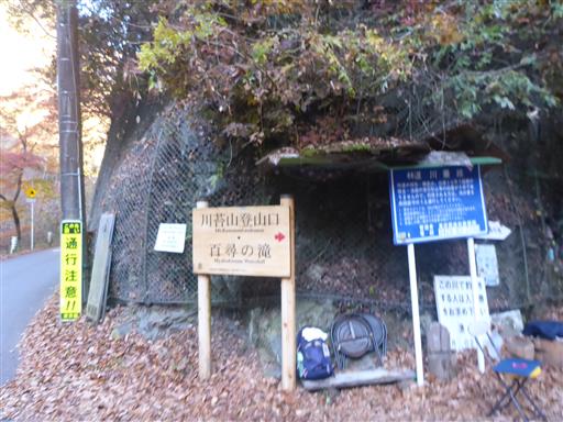 川乗橋から車道を45分歩いて、ようやく登山口に到着する。