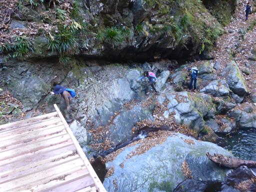 沢沿いの岩場を通過。歩いていて楽しい登山道だ。