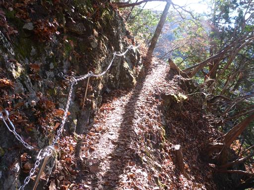 この辺りも片側は急斜面で、滑落しないように鎖が設置されている。