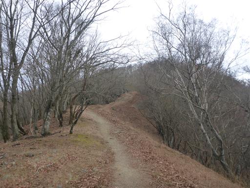 尾根上を忠実にたどる踏み跡と巻道が錯綜していて歩きにくい。