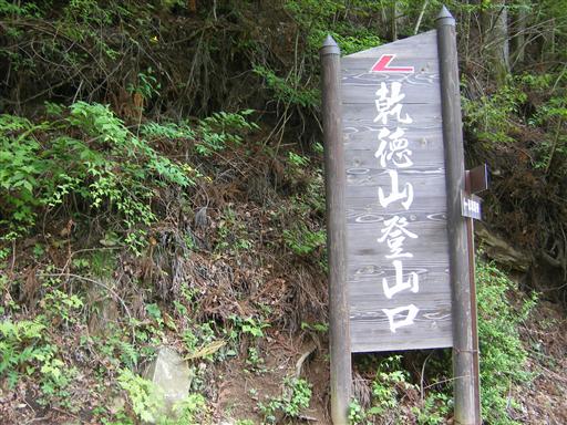 乾徳山登山口に到着。立派な看板がある。