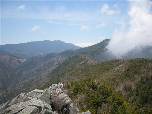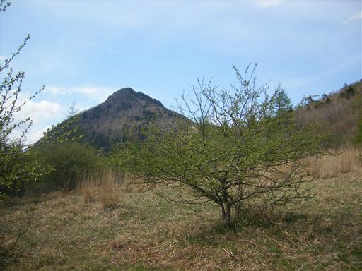 下山道から乾徳山を望む。