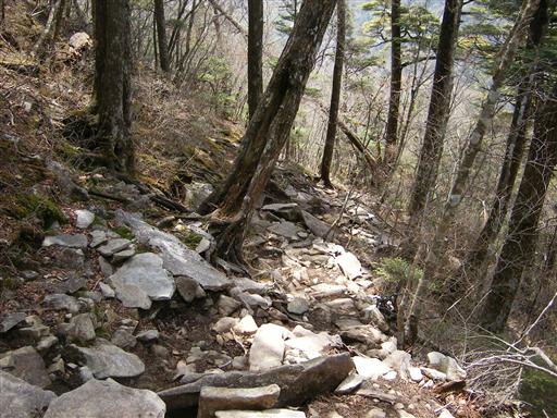下山道は石がごろごろしていて歩きにくい。