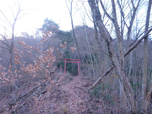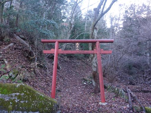 赤い鳥居に到着。御前山山腹にある厄王権現の鳥居だ。