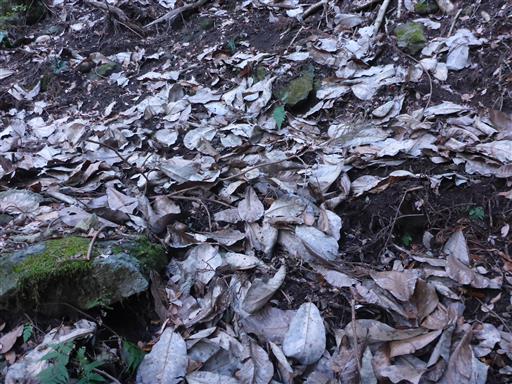 ホオノキの落ち葉が大量に落ちている。