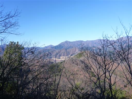 少し展望が広がる。真ん中の目立つ山は滝子山だ。