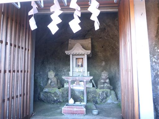 中を覗くと小さな社と狛犬が祀られている。