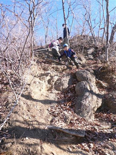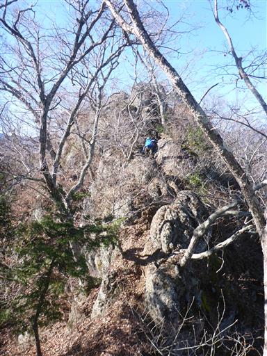 山頂直下は岩尾根の登りだ。