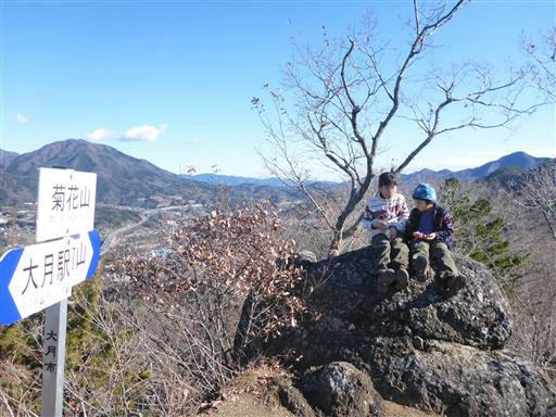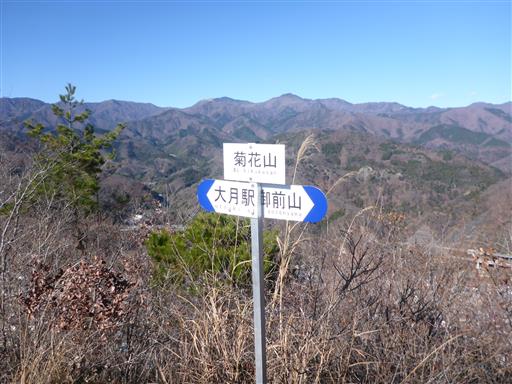 | ルート (Map) | 大月市民会館駐車場 (8:36) - (9:13) 厄王権現石碑 - (9:29) 四合目鳥居 - (10:13) 御前山 (10:47) - (11:52) 菊花山 (12:31) - (12:57) 登山口 - (13:28) 大月市民会館駐車場 |