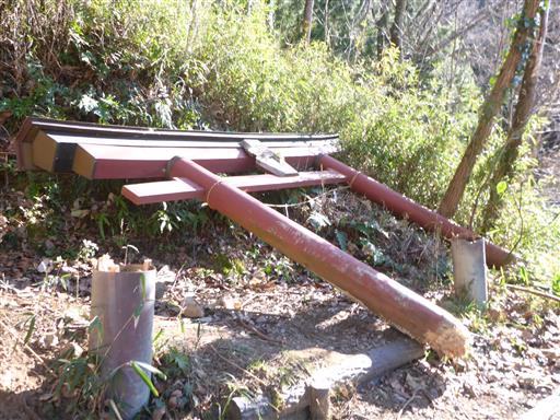 下山地点には鳥居が倒れている。