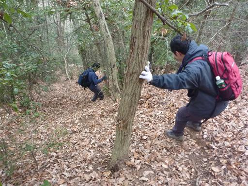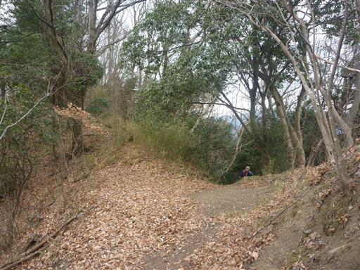 ここから先の下山路は急降下。葉が積もっていて非常に滑りやすい。