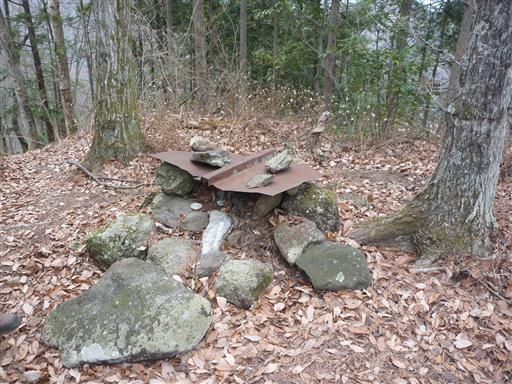 足元には粗末な祠らしきものがある。