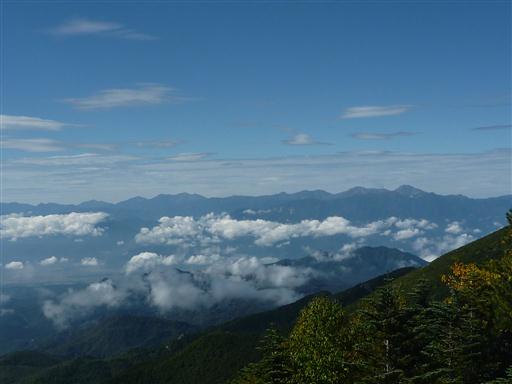 そして南アルプス。白峰三山や悪沢岳、赤石岳など南アルプスを代表する山々が見えている。