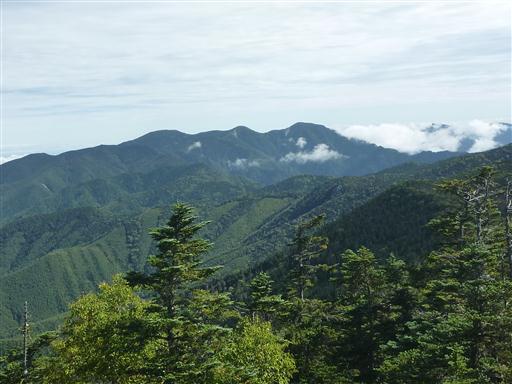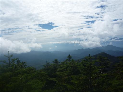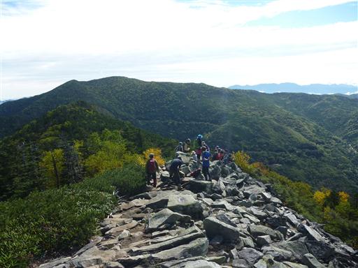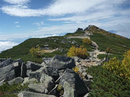 山頂から少し先に進むと前方の展望が大きく開ける。