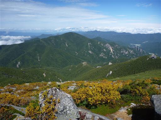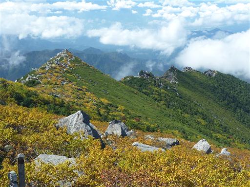 金峰山に近づくと辺りはハイマツが多くなり視界が広がってくる。