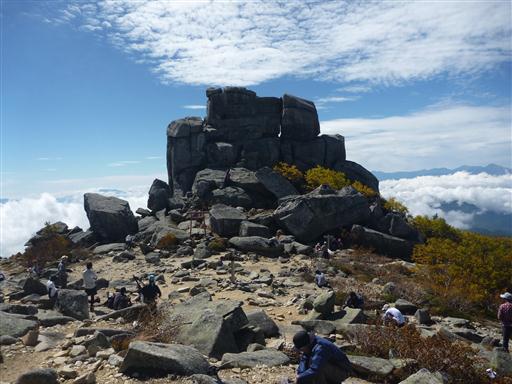 五丈石直下では大勢の登山者が休憩しているため、岩に登っていると注目の的だ。