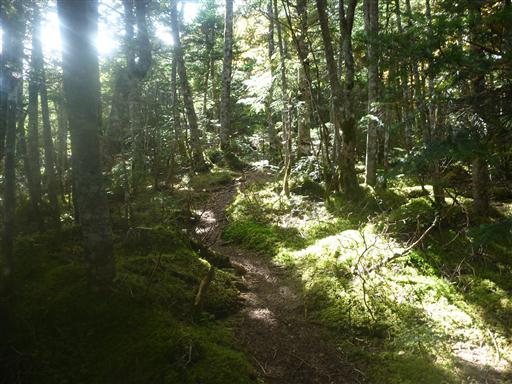登山道に足を踏み入れる。この辺りは針広混交林だ。
