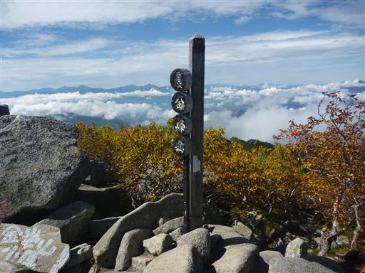 金峰山山頂に到着。標高は2599mで2600mに僅かに足りない。